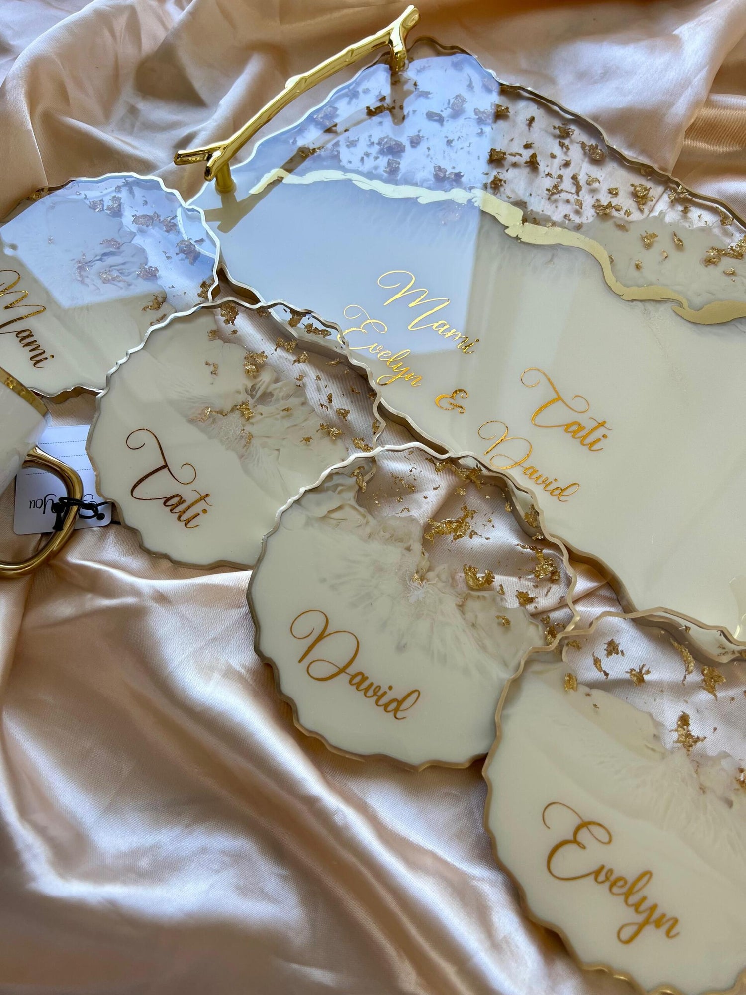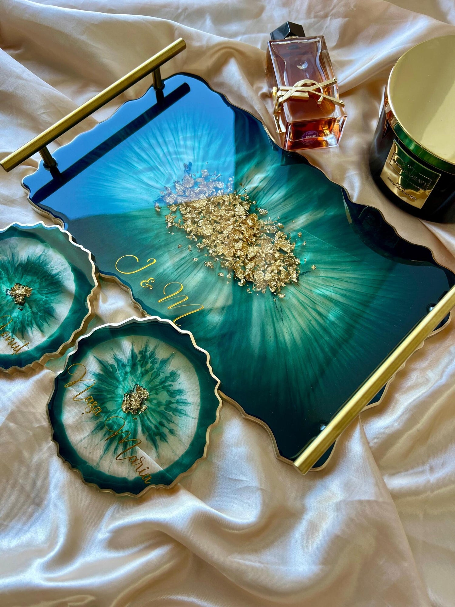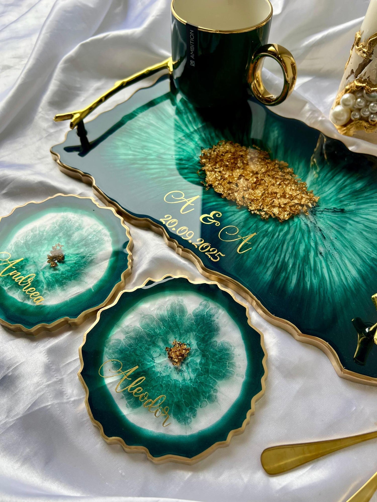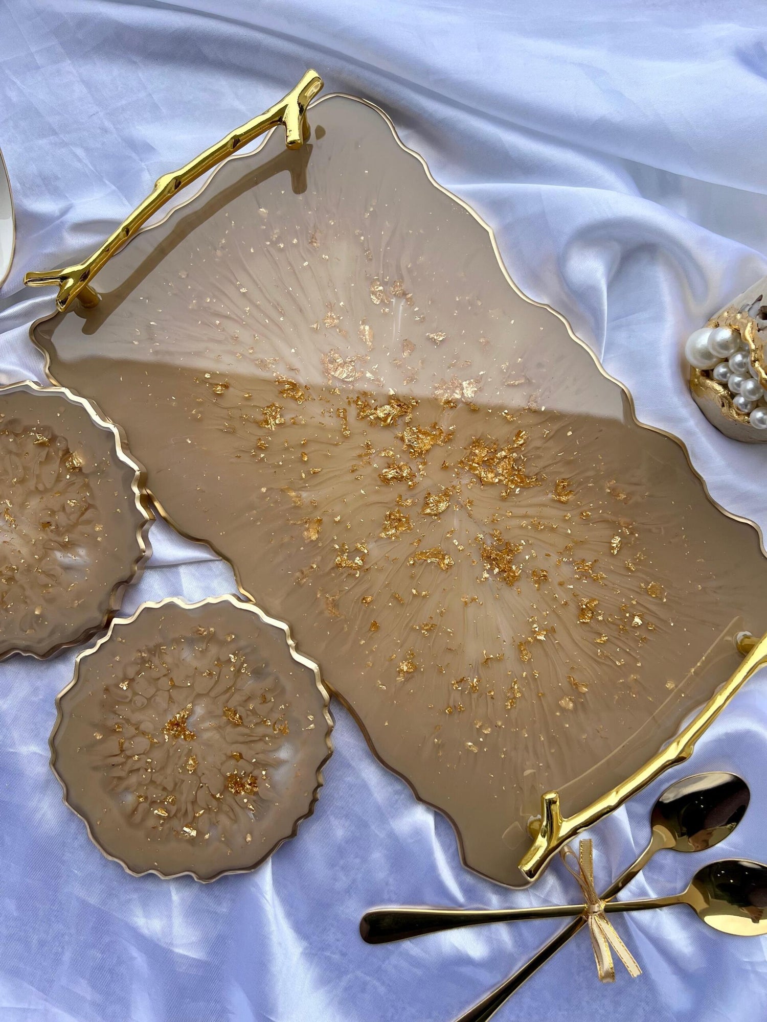 Tăviță din rășină cristal handmade cu foiță de aur – cadou personalizat și decor lux