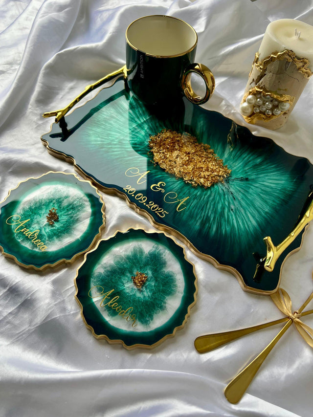 Descoperă o tăviță din rășină handmade, realizată manual din rășină epoxidică premium, cu dimensiunea de 35x20 cm, creată pentru a adăuga eleganță și rafinament oricărui spațiu.